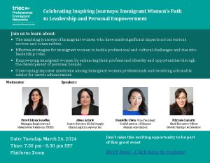 « All Events This event has passed. TRIEC PINs Event: Celebrating Inspiring Journeys – Immigrant Women’s Paths to Leadership and Personal Empowerment March 26, 2024 @ 7:30 pm - 8:30 pm Free « AI Era is Here – Let’s Get in Touch! Funding Opportunities for PINs Associations and Community Groups with City of Mississauga » Add to calendar Google Calendar iCalendar Outlook 365 Outlook Live Details Date: March 26, 2024 Time: 7:30 pm - 8:30 pm Cost: Free Website: https://triec.zoom.us/meeting/register/tZUqdOyqqz4qE92FhUyP2GVZae6-zLCFzi6L#/registration Venue Zoom Organizer TRIEC